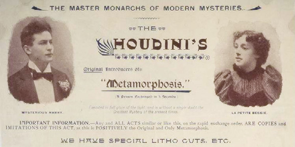 Harry Houdini began his career at 17, doing small magic shows with his brother in music halls and sideshows. By 1895, Harry and his new wife, Beatrice Raymond, had joined the Welsh Brothers Circus where they sang and danced and performed a trick called "metamorphosis", in which they switched places in a locked trunk. During this time, Houdini worked on his voice and showmanship and most important to his career, became an expert at handcuffs. This expertise in escape would allow Houdini to become an international superstar.
