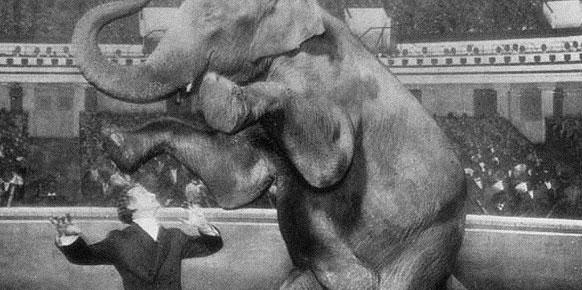 On January 7th, 1918 Houdini performed his "Vanishing Elephant" illusion at New York's Hippodrome Theater. The Hippodrome featured the world's largest stage as well as a troupe of trained elephants. The illusion called for only a huge cabinet, an elephant, and a team of twelve, strong men. Houdini began with a cabinet, he described as "about eight feet square, twenty six inches off the floor." All parts of the cabinets where shown to the audience and the elephant was walked inside. Once inside the cabinet, the doors and curtains were closed. Once reopened, the cabinet was empty, the elephant vanished.